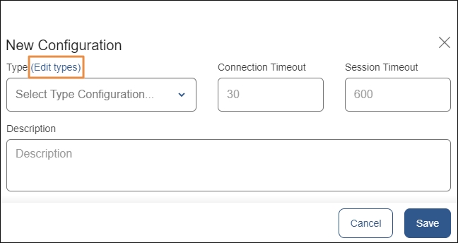 Para crear un tipo de configuración personalizada nuevo y agregarlo a la lista de tipos de configuración, haz clic en Edit Types en la ventana modal New Configuration.